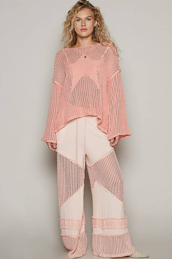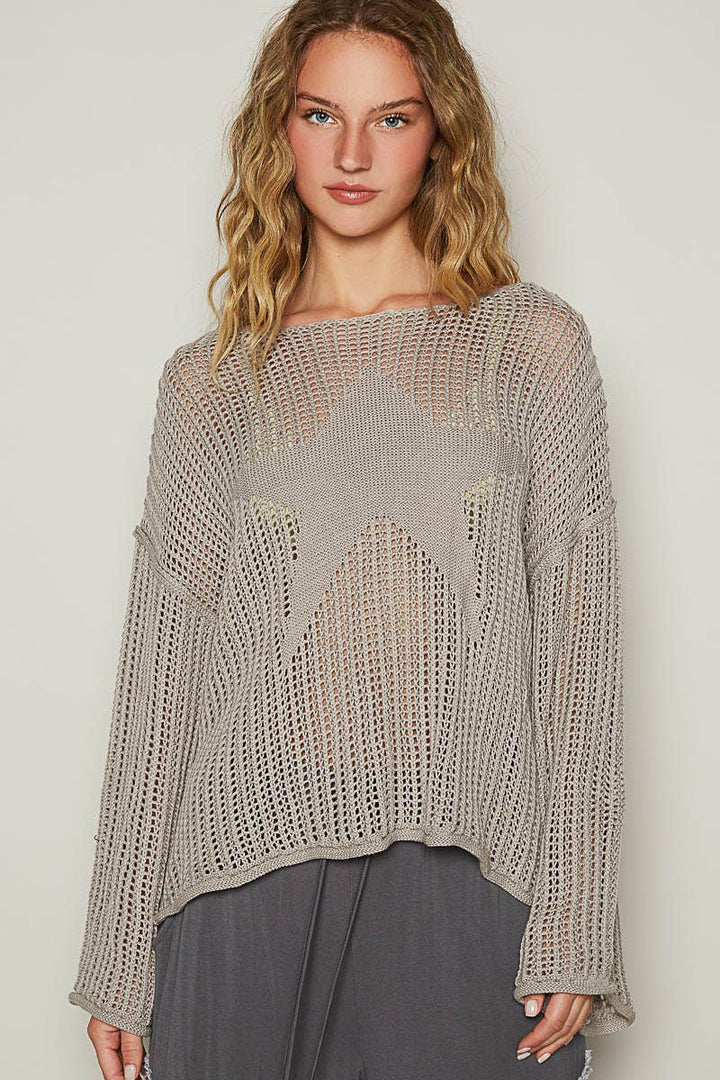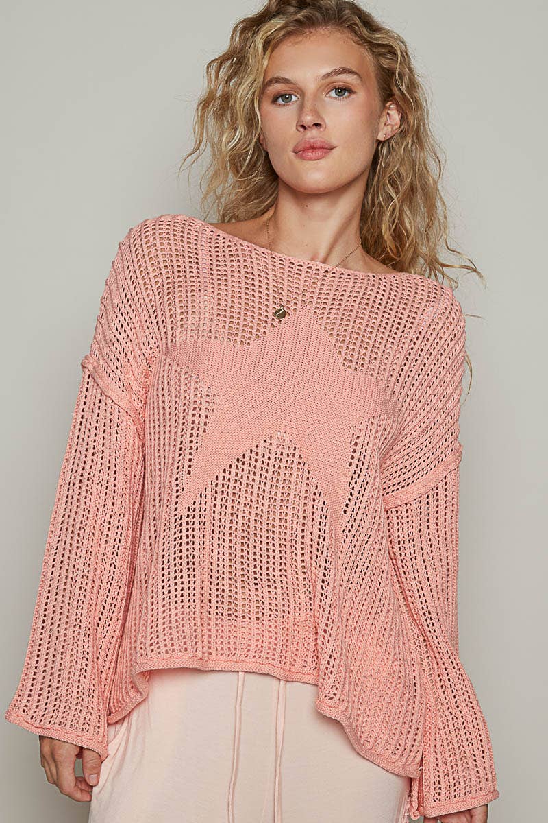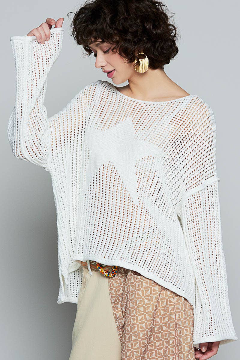 Get ready to shine in our Star Sweater! Made with a round neck, long sleeves, and a relaxed fit, this cotton top features a unique star weave that will make you stand out. The clean neck edge and solid color add a touch of sophistication to this playful and cozy sweater.