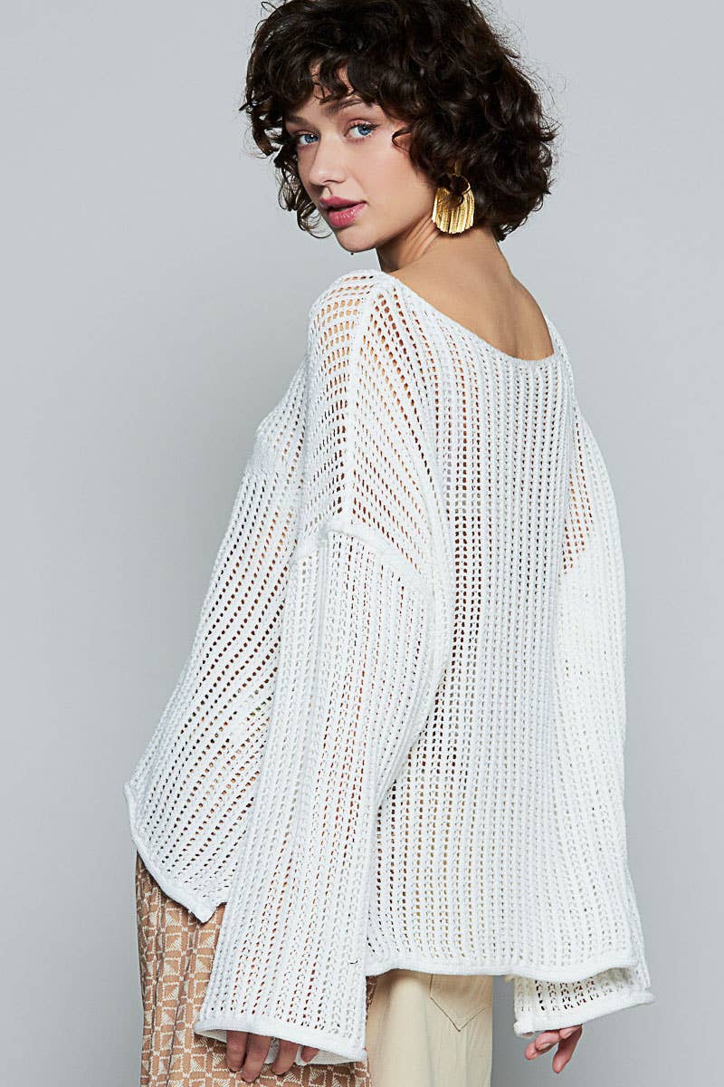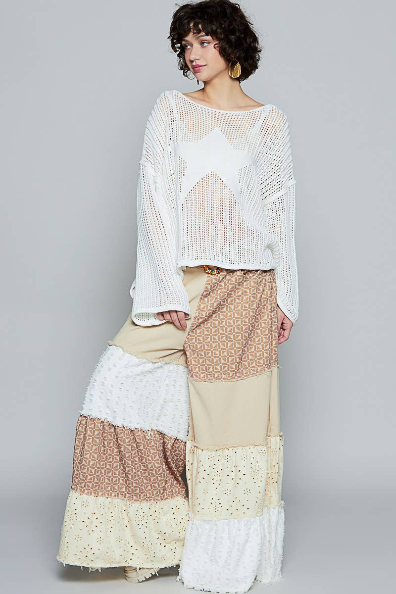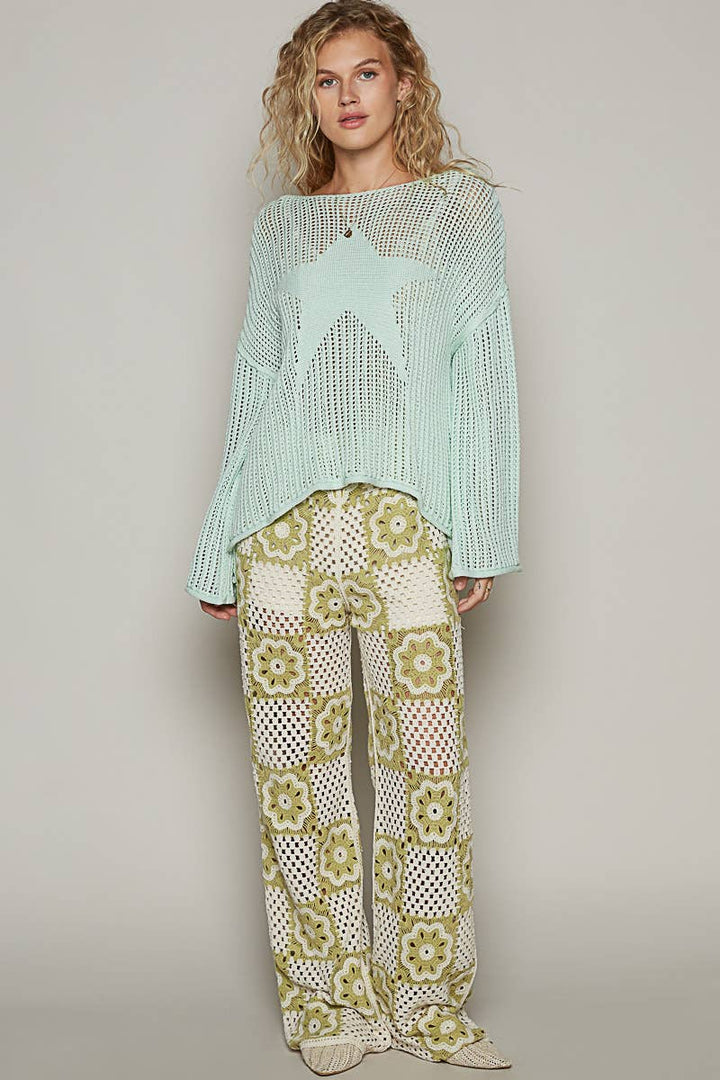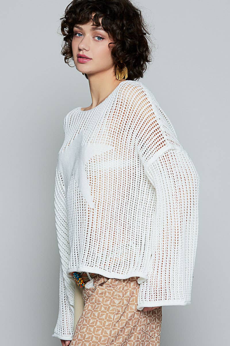 Get ready to shine in our Star Sweater! Made with a round neck, long sleeves, and a relaxed fit, this cotton top features a unique star weave that will make you stand out. The clean neck edge and solid color add a touch of sophistication to this playful and cozy sweater.