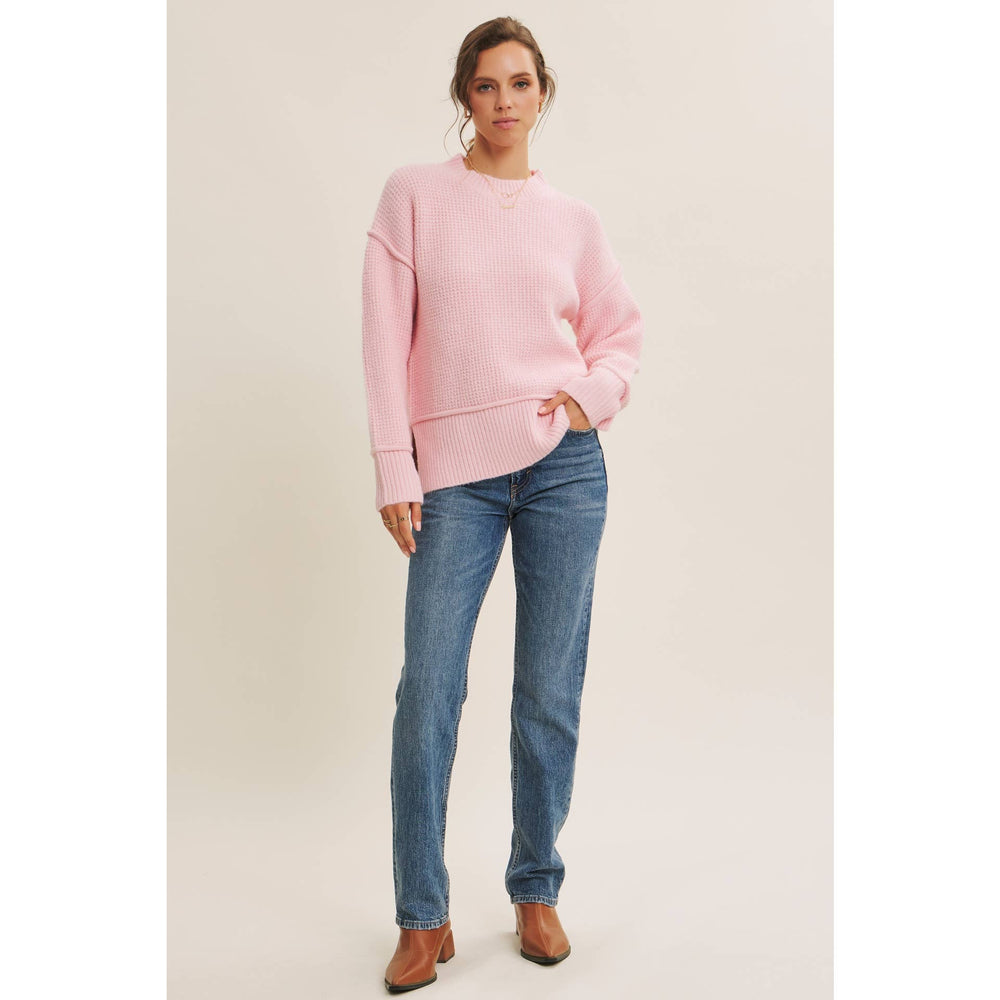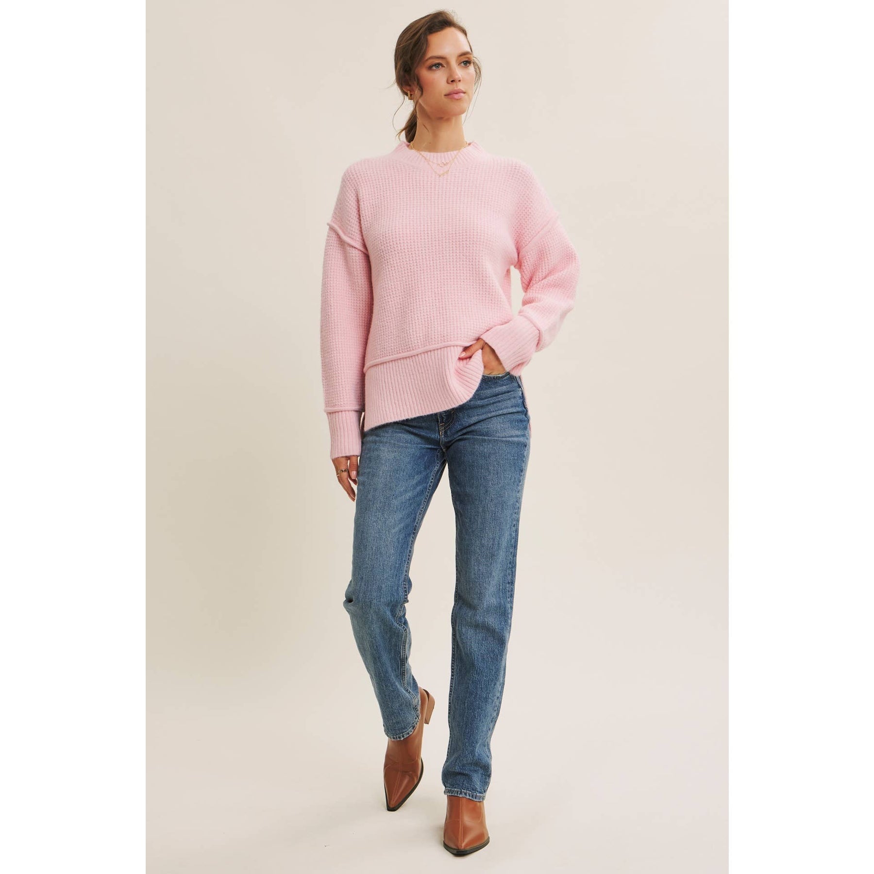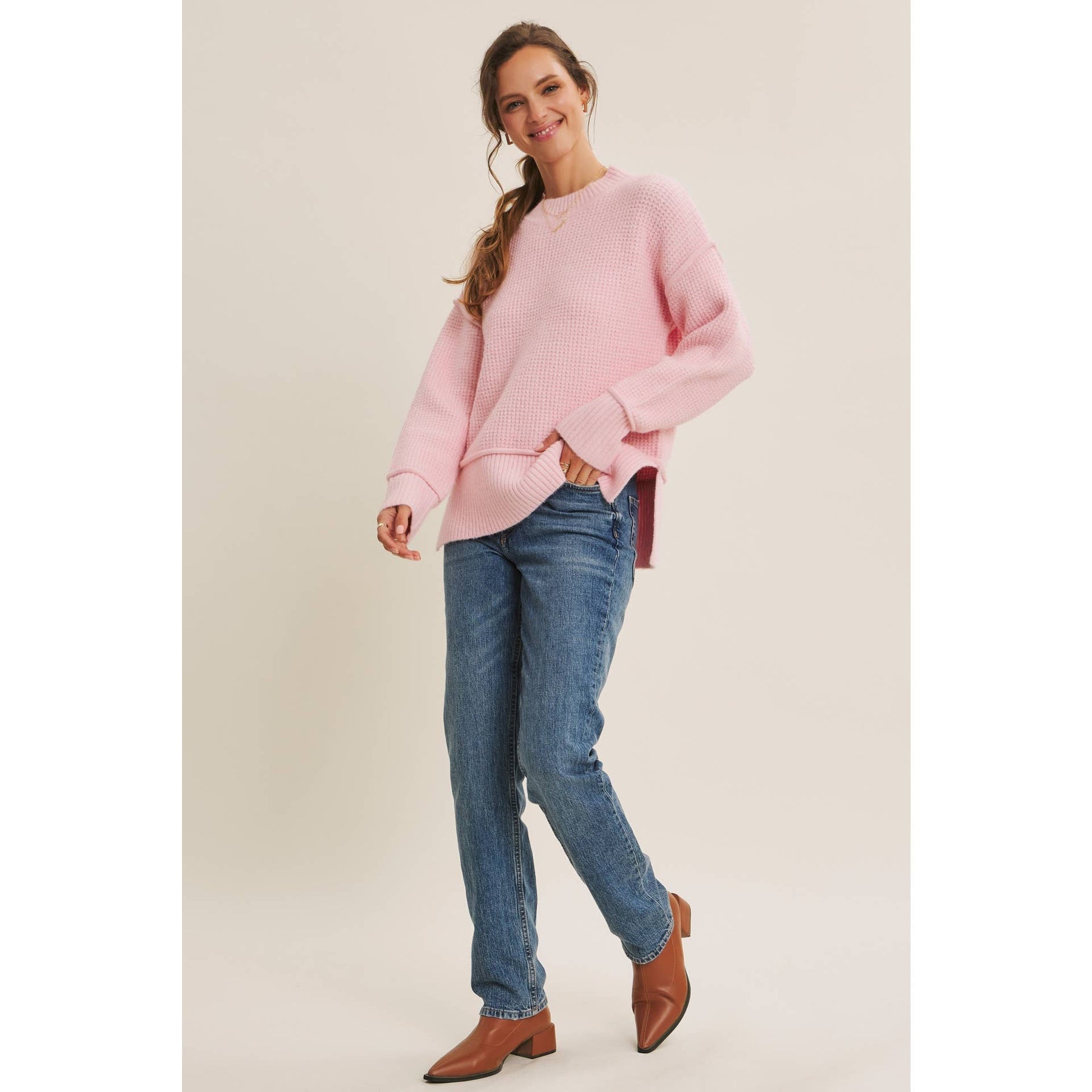 Cozy up in sustainable style with this recycled blend knit sweater. Crafted from a soft mix of recycled polyester, polyester, acrylic, and spandex, it offers a relaxed fit with ribbed trim at the hem and cuffs for a timeless finish.