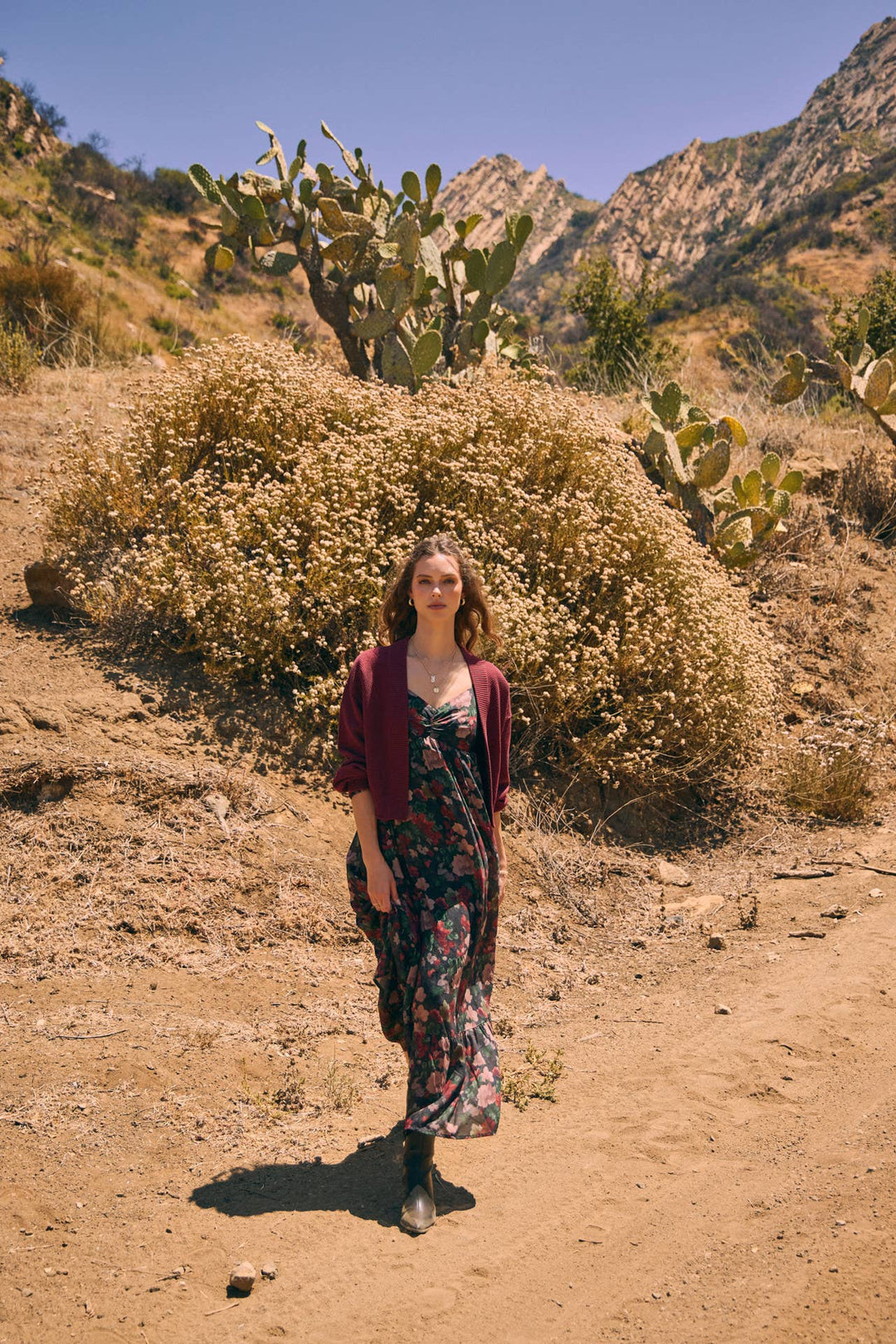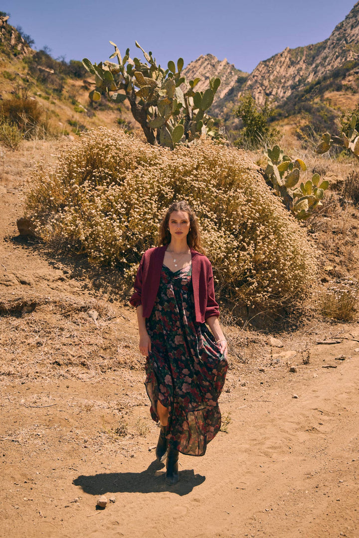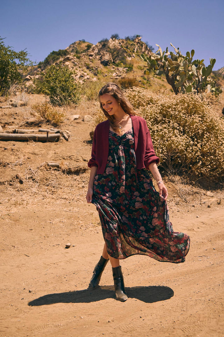 The Daisy Cozy Knit Sweater | Retro Floral Knit Pullover sweater styled in a boho layering look