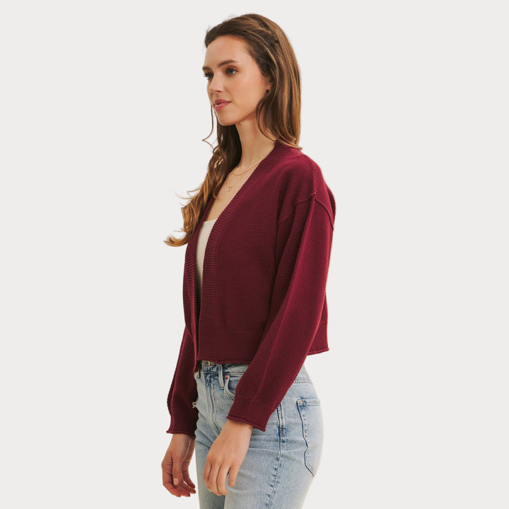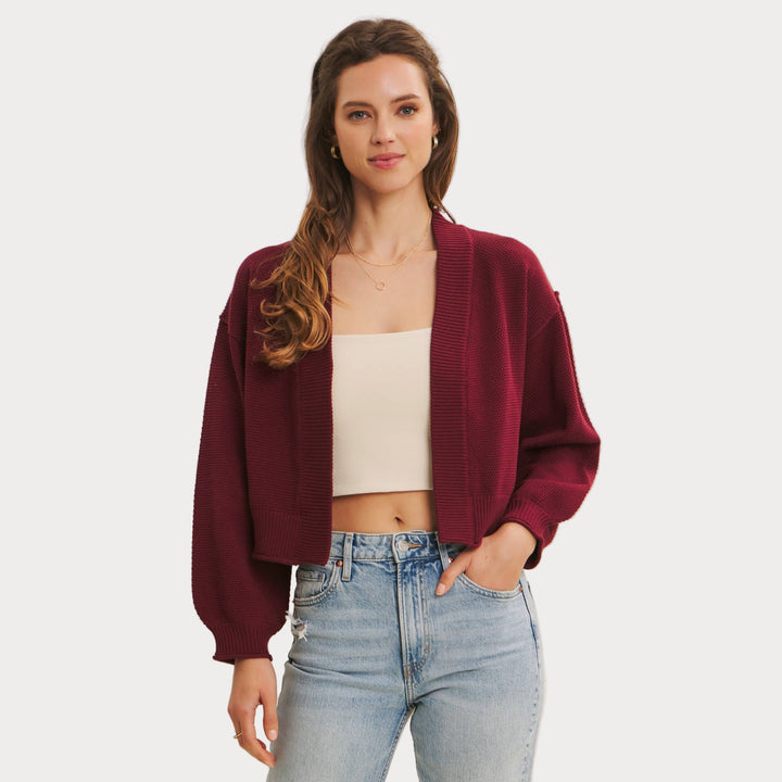 This playful waffle knit cardigan is your new go-to for layering with a twist. Its soft texture and voluminous balloon sleeves bring fun and flair to any outfit, while the relaxed fit keeps things comfy and casual. Perfect over tanks, dresses, or turtlenecks, this cropped sweater adds cozy charm to cooler days without breaking the bank.