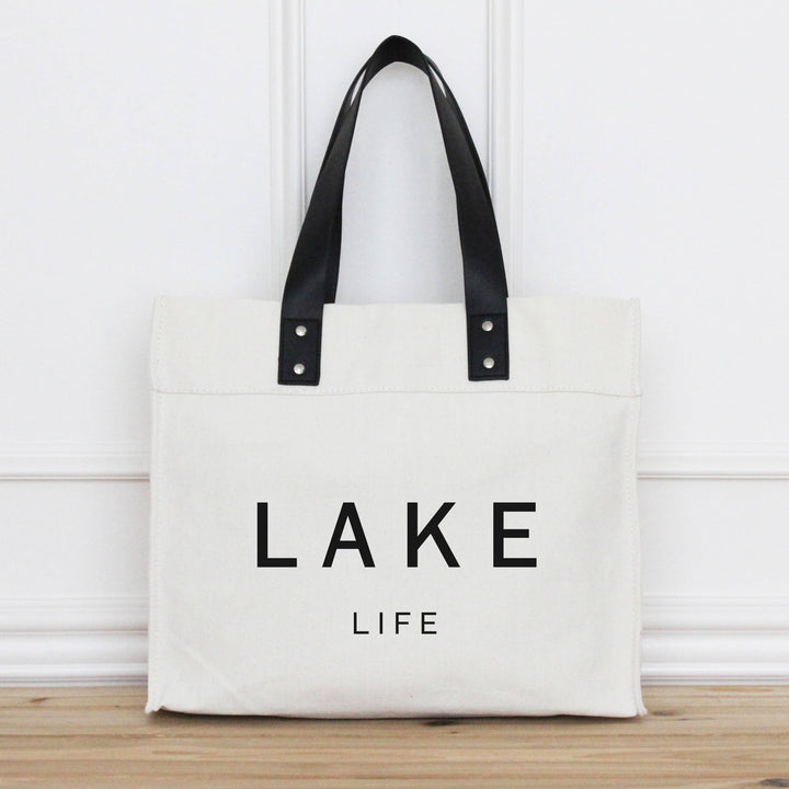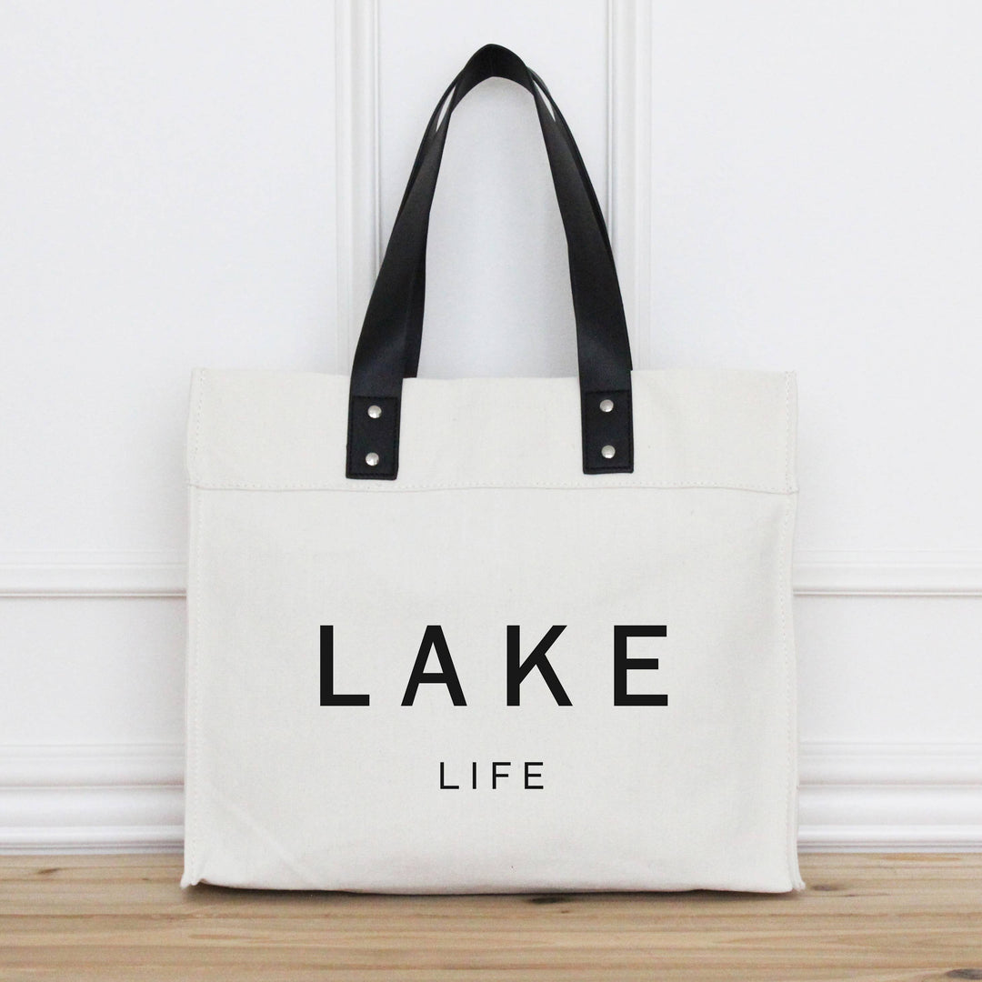 Introducing the Lake Life Market Tote, a stunning blend of style and functionality from Porter Lane Home. Crafted with 100% premium quality canvas, this tote features durable leather handles and a spacious design measuring 13" x 15" with a 5" wide gusset, perfect for all your essentials.