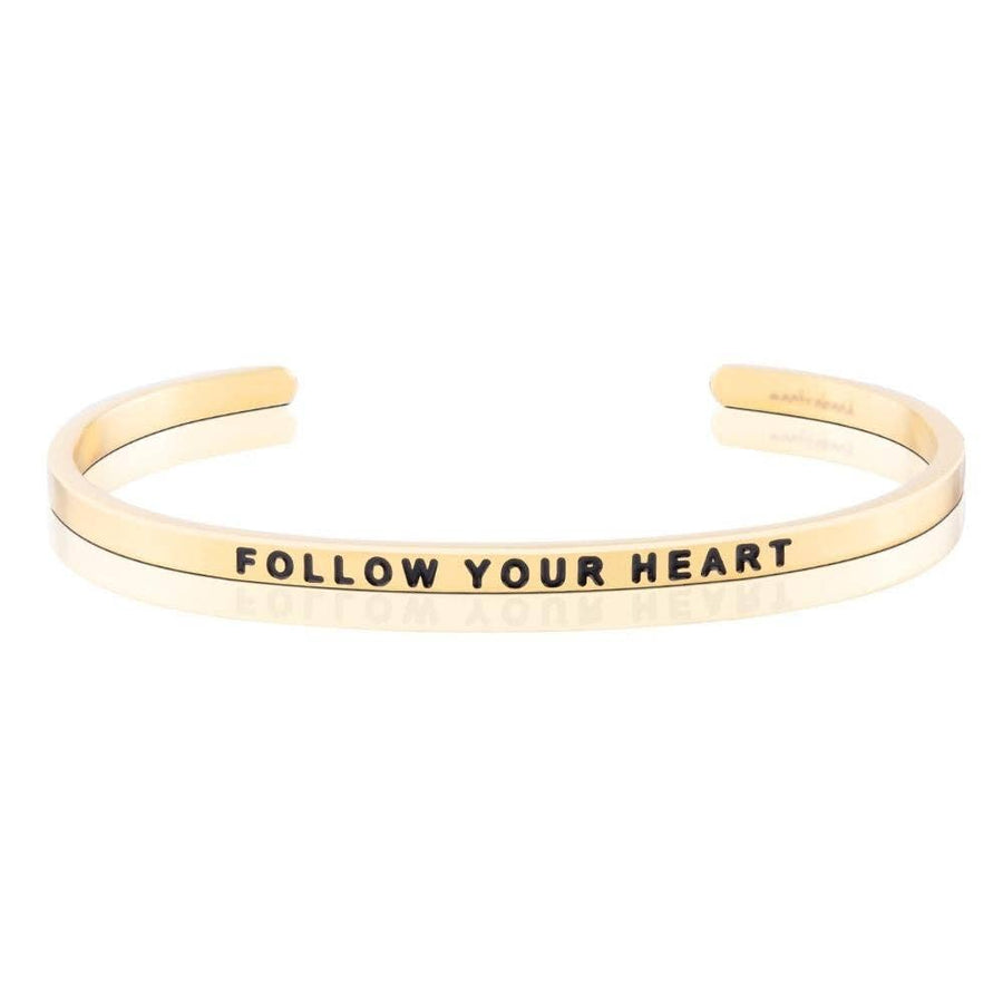 Embrace the wisdom of your heart with the Follow Your Heart bracelet from MantraBand. This delicate yet durable piece is crafted from stainless steel and is both lead-free and nickel-free, ensuring it remains hypoallergenic and tarnish resistant. With 18K gold and rose gold dipped options, this adjustable bracelet fits most and boasts a lifetime guarantee against breakage. Perfect as a thoughtful graduation gift, let this inspirational jewellery be your reminder to always trust your heart and follow its lead.