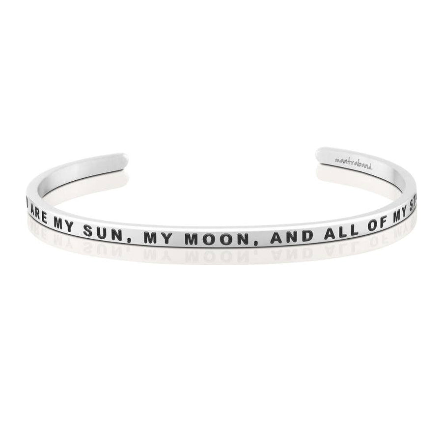 Discover the perfect expression of love with the You Are My Sun, My Moon, And All Of My Stars bracelet. Crafted from durable stainless steel, this fully adjustable piece fits most wrists comfortably. Its hypoallergenic and tarnish-resistant properties ensure it remains a cherished accessory for any occasion. Choose between stunning gold or rose gold options, both beautifully 18K gold dipped. Wear it as a daily reminder of the deep, limitless love you share.