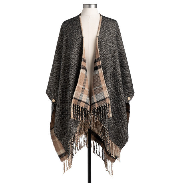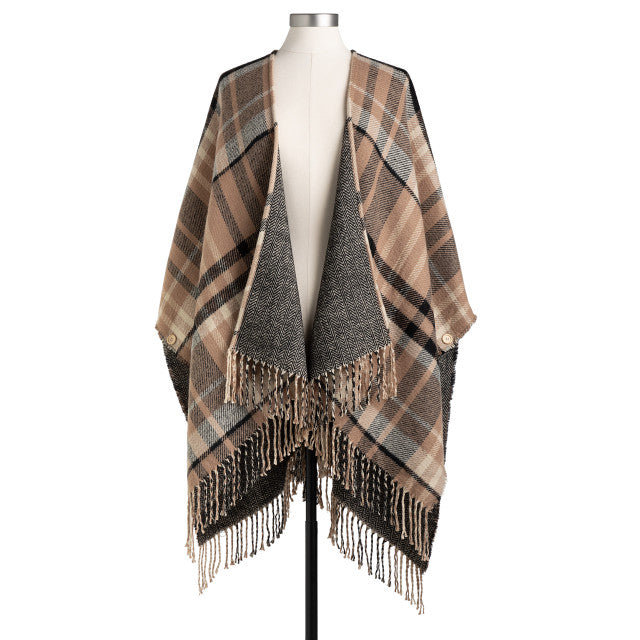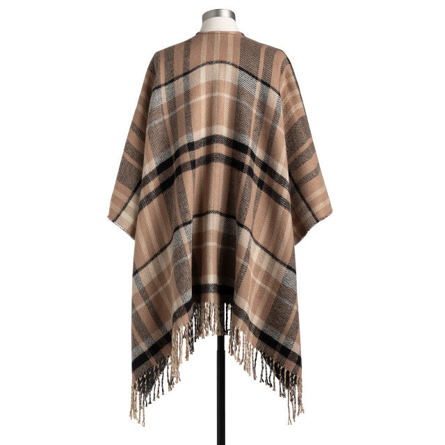 Introducing the Reversible Plaid Kimono in Camel and Black, designed to celebrate your journey and inspire every moment ahead. Measuring 50 inches wide and 30 inches long with a stylish 4-inch fringe, this versatile piece effortlessly enhances any outfit. Crafted from soft acrylic, it’s perfect for everyday wear.