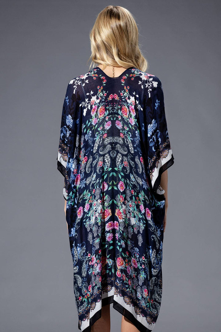 Effortlessly layer this Rose Paisley Kimono for a versatile and stylish look. With a beautiful mix of roses and paisleys, this kimono is perfect for any outfit, casual or dressy. Made from 100% viscose, it's lightweight and comfortable.
