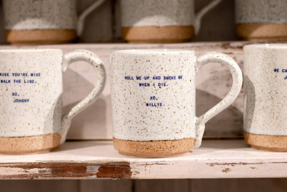 Microwave & dishwasher safe. Due to the whimsy handmade nature, quotes could be askew and should be expected. Variation in color and speckling will vary. Size: 4"h x 3.5"d, 15oz