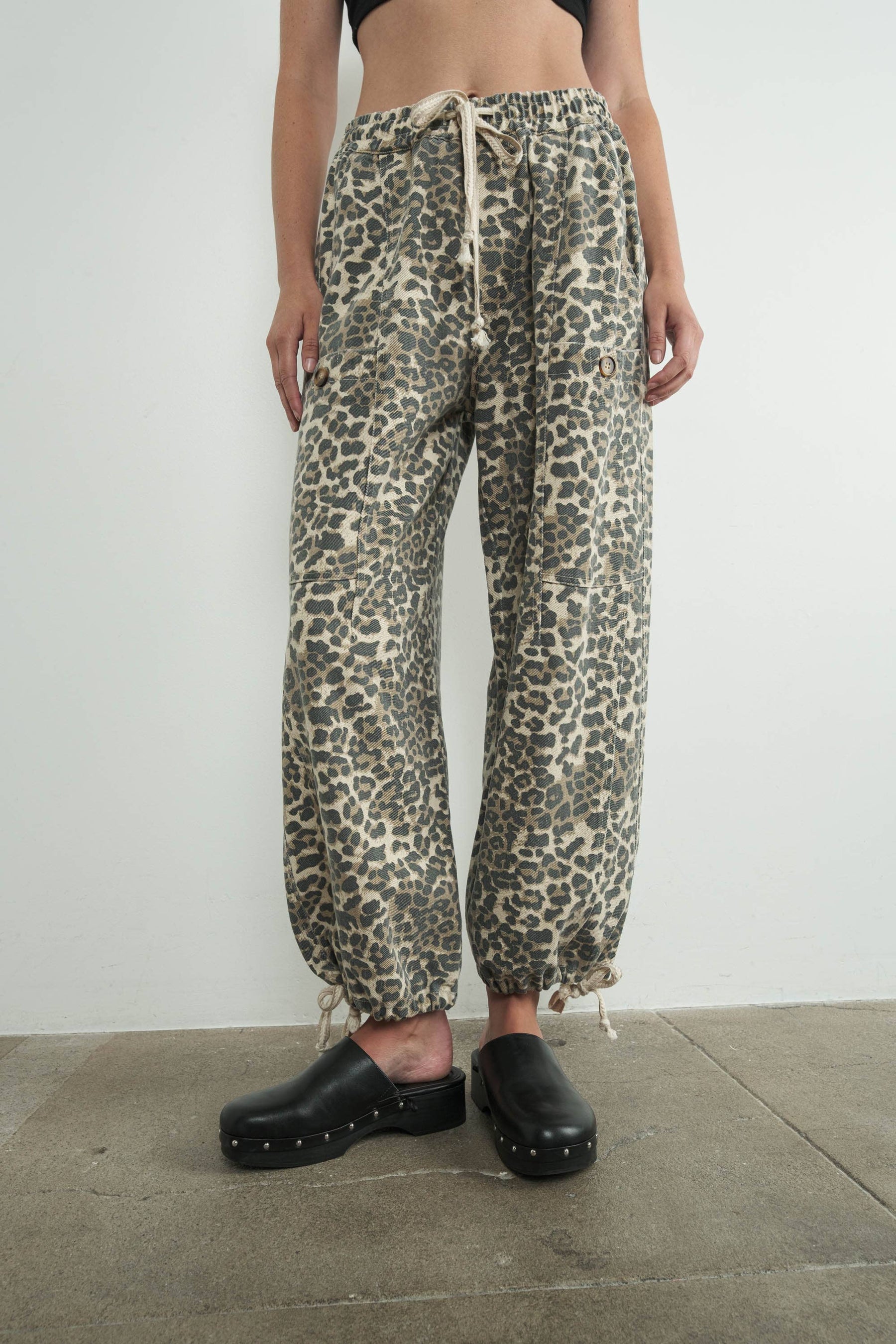 **Leopard Print Relaxed Fit Pull-On Pants**
